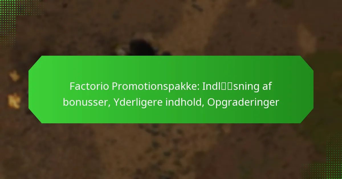 Factorio Promotionspakken inkluderer en række genstande såsom unikke skins, soundtracks og in-game ressourcer. Spillere kan forvente at modtage eksklusive kosmetiske genstande, der personaliserer deres spilleoplevelse, sammen med yderligere indhold, der forbedrer den samlede nydelse af spillet.