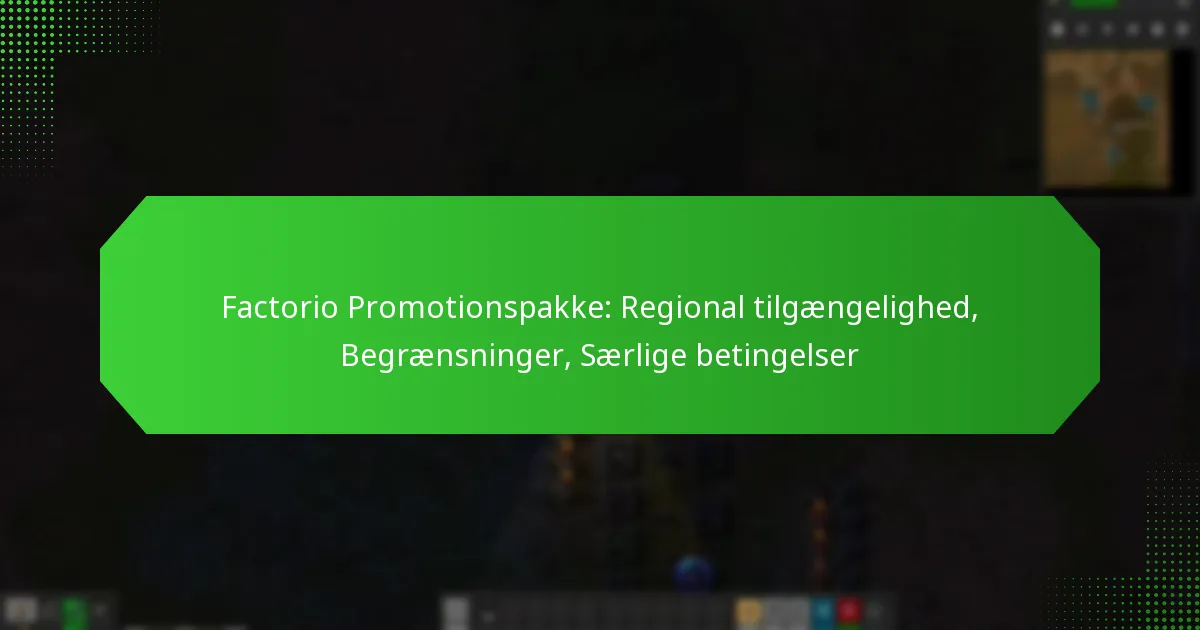 Factorio Promotionspakken tilbyder en samling af eksklusive genstande, rabatter og forbedringer, der har til formål at berige spilleoplevelsen. Denne pakke er designet til både nye spillere og veteraner og giver værdifuldt indhold, der forbedrer gameplay og fællesskabsengagement.